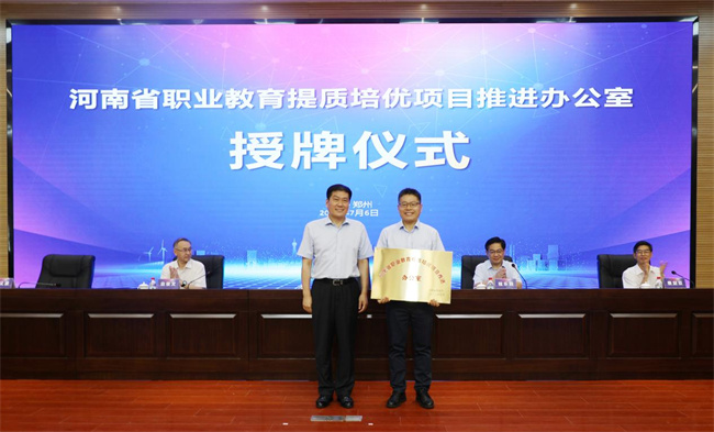 大会举行了河南能源动力与材料职教集团启动仪式,与会领导共同为河南能源动力与材料职业教育集团进行揭牌。省教育厅二级巡视员董玉民代表省教育厅为“河南能源动力与材料职业教育集团”和“河南省职业教育提质培优项目推进办公室”进行授牌。