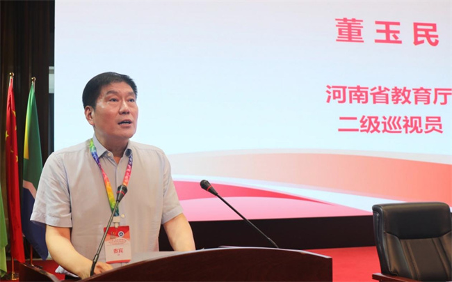董玉民介绍了河南省职业教育发展情况。他指出大赛的举办对展示我国职业教育优秀教育成果,加强金砖国家院校间的交流和学习,深化教育教学改革、强化学生动手能力,造就素质优良、业务过硬的高技能人才具有十分重要的意义。他希望河南省高职院校以此次大赛为契机,加强交流与学习,借鉴金砖各国技能人才培养的先进经验,树立全新育人理念,大力弘扬工匠精神,进一步深化教育教学改革,努力提高办学质量和水平,以市场需求为导向,强化高素质技术技能人才的培养,推动学校跨越式发展,不断增强办学实力,共同助推金砖国家国际化高质量技能人才培养。