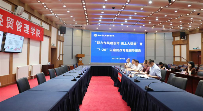 7月21日上午,中共河南省委教育工委、河南省教育厅举办第四期“能力作风建设年 线上大讲堂”暨“7·20”以案促改专题辅导报告,中共河南省纪律检查委员会、河南省监察委员会第七监督检查室主任刘卫东作专题报告,河南省委教育工委专职委员何秀敏主持报告会。郑州升达经贸管理学院校党委委员、纪委委员在行政楼国际会议厅聆听报告。