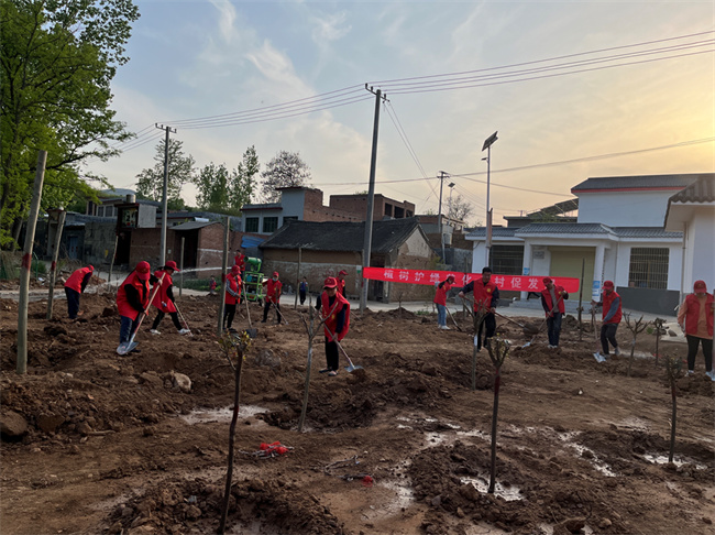 驻村工作队带领群众在文化广场旁植树