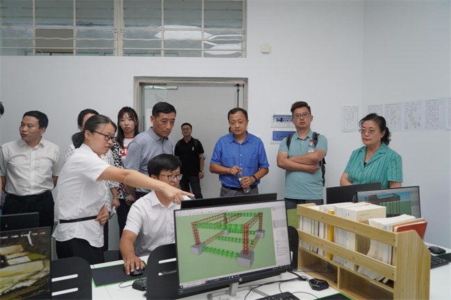 在光武路校区,专家组一行实地考察了学校建筑工程虚拟仿真实训基地的建设与运行情况,详细了解建筑工程虚拟仿真实训基地的硬件设施、软件配置、教学团队、实训项目、服务专业、开设课程、实训管理等,并与虚拟仿真实训团队的教师进行了深入交流。