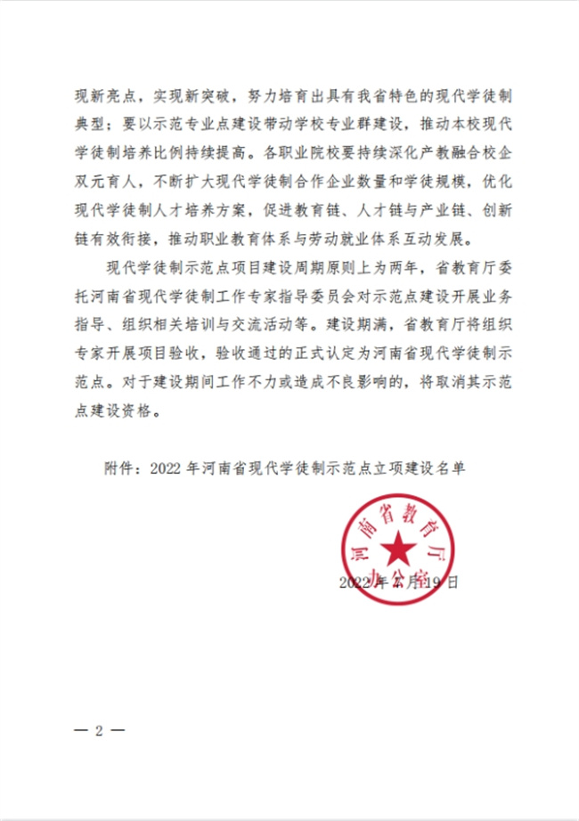 近日,河南省教育厅发布《关于公布2022年河南省现代学徒制示范点立项建设名单的通知》(教办职成〔2022〕236号),焦作大学土木建筑工程学院建筑工程技术专业被认定为河南省现代学徒制示范点立项建设项目。