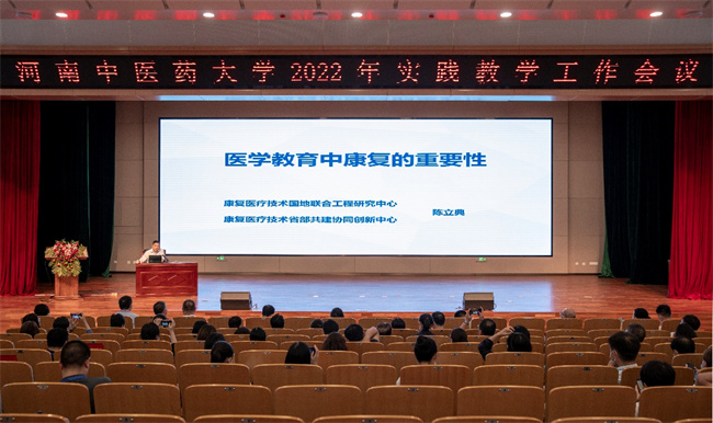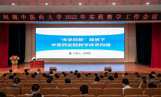 2022年7月30日至7月31日,河南中医药大学2022年实践教学工作会议在新校区俊学综合实验楼一楼报告厅召开。河南省卫生健康委员会副主任张若石,河南省教育厅高教处处长张水潮,福建中医药大学党委书记陈立典,济宁医学院原校长张成博,中国人民解放军联勤保障部队第九八八医院院长谢峻,河南中医药大学校长许二平,校党委委员、副校长徐江雁,出席会议,学校教务处及相关院部负责人,学校350余名实践教学基地的负责人和带教老师参加会议。本次会议分为主题大会、分论坛和座谈会三个阶段。主题大会由徐江雁主持。
