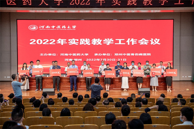 河南中医药大学教务处处长禄保平宣读了《河南中医药大学关于表彰2020-2021学年优秀实习基地、优秀实习管理人员、优秀带教老师的决定》,学校教学评价与教师发展中心主任呼海涛宣读了《河南中医药大学关于表彰第一届实践教学竞赛获奖教师的决定》,与会领导和嘉宾为获奖集体和个人现场颁奖。
