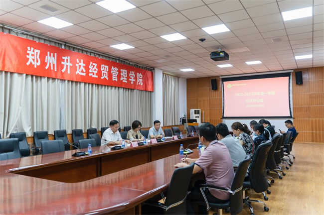 7月28日上午,郑州升达经贸管理学院在行政楼第二会议室召开2022-2023学年第一学期第一次校长办公会。校长、校党委副书记、纪委书记张欣,副校长、校党委副书记、工会主席张金安,副校长兼教务长吴益民,校长办公室主任朱永恒参加了本次会议,相关职能部门主管列席本次会议。会议由张欣主持。