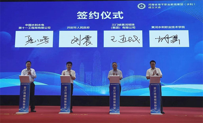 会上,陈垠亭为河南水利骨干职业教育集团授牌。与会领导共同为河南水利骨干职业教育集团举行启动仪式。刘震、王通战、夏水芳、胡昊共同签署了河南水利骨干职业教育集团共建框架协议。(袁洪博 翟雨航)