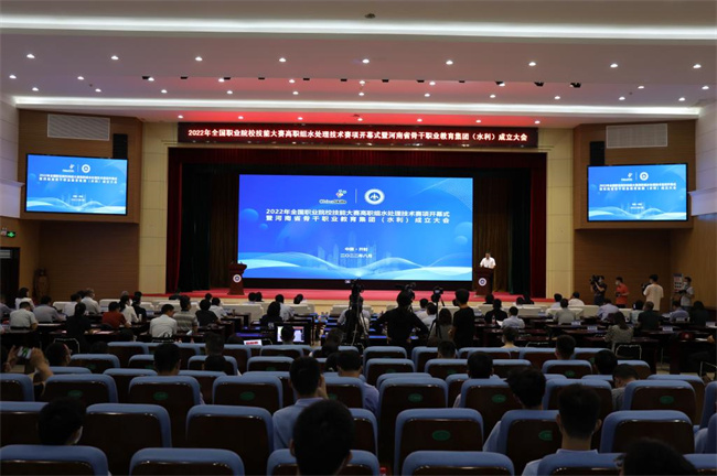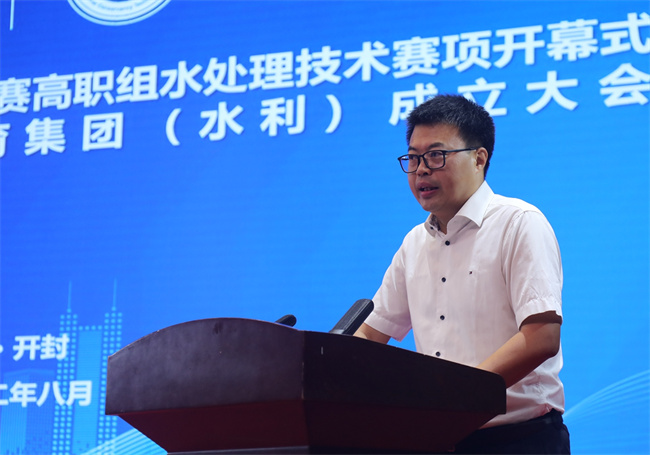 8月13日上午,2022年全国职业院校技能大赛水处理技术赛项开幕式以线上线下相结合的形式在黄河水利职业技术学院学生活动中心举办。教育部职业教育与成人教育司职业院校发展处处长任占营,中国水利教育协会会长张明俊,河南省教育厅副厅长陈垠亭,河南省水利厅二级巡视员傅华,开封市人民政府副市长刘震,该校党委书记、赛区组委会副主任委员周保平,校长胡昊等出席开幕式。来自全国27个省、自治区、直辖市的50支参赛队的领队、参赛选手和指导教师,以及水处理技术赛项专家组、裁判组、监督组、仲裁组的专家,合作企业代表和该校师生代表300余人参加开幕式。开幕式由胡昊主持。