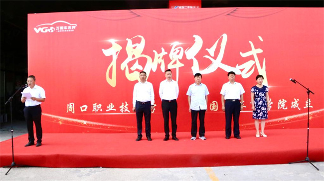 8月13日,周口职业技术学院万国汽车商学院成立暨揭牌仪式在万国车世界举行。学校党委书记刘士欣、校长李清臣等出席仪式。