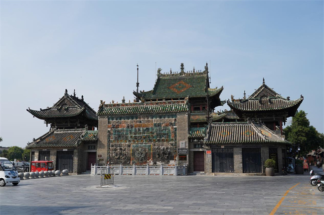赊店古镇依水而建,依商而兴。大家来到步入古镇,仿佛走进了历史深处。始建于清乾隆年间的山陕会馆,集精巧的建筑结构与精湛的雕刻艺术于一体,实践团成员首先来到这里,在雕梁画栋的多彩琉璃照壁前驻足停留,不禁被精湛的古代工艺所折服,壁面整体构图精巧,寓意丰富,体现了中国古代“匠人”的伟大智慧。