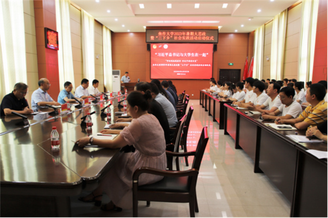 “牢记嘱托践使命 行走中原看巨变”焦作大学2023年暑期大思政暨“三下乡”社会实践活动启动仪式在行政楼201隆重举行。校党委书记汪诗怀、党委副书记靳贤胜出席了本次仪式。校党委委员、党政办公室主任林五星,党委委员、党委组织部部长王友军,马克思主义学院党总支书记张育琳,各学院党总支书记、团总支书记以及实践团(队)的指导老师、实践团(队)成员共同参加了本次活动。仪式由机关党总支书记兼团委书记赵文平主持。