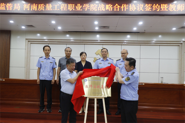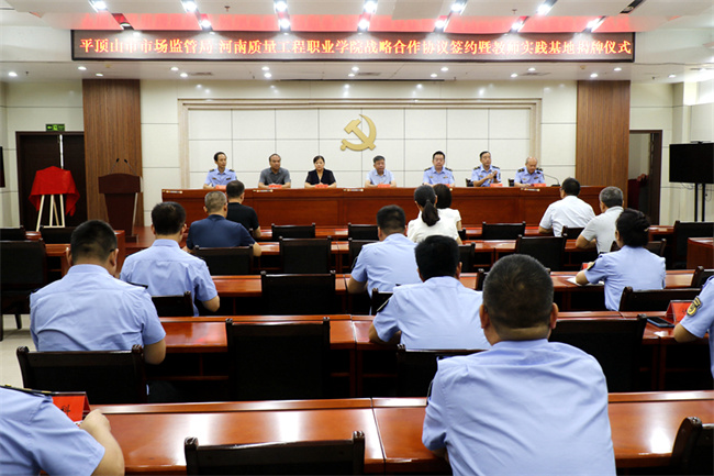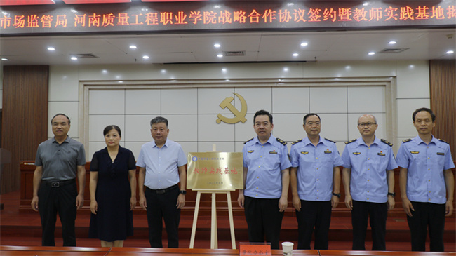 7月13日上午,河南质量工程职业学院与平顶山市市场监督管理局战略合作协议签约暨教师实践基地揭牌仪式在市场监督管理局会议室举行。