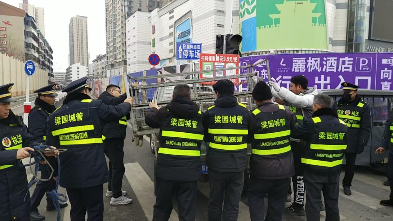 临近马年新春佳节,为进一步规范、提升梁园城区市容秩序,给广大人民群众创建一个安定有序、祥和舒适的节日环境。商丘市梁园区城市管理局将辖区划分为五个“战区”,出动五个作业组,自1月29日起全面启动节前市容秩序集中治理行动。以“执法+服务”的工作理念,既保持整治力度,又注重民生温度,温情守护商户经营,确保市民出行便利、生活有序。