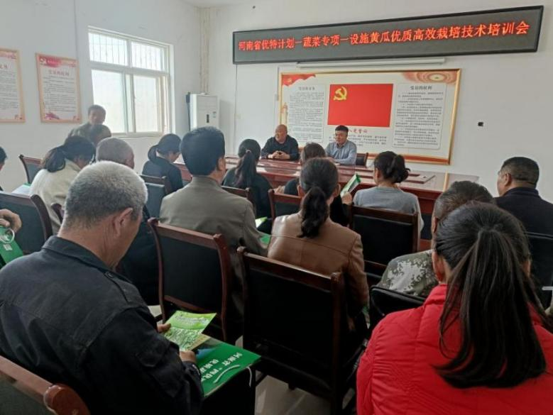 2026年3月31日,周口市川汇区蔬菜科学研究所举办了河南省“优特计划”优质蔬菜专项“设施黄瓜优质高效栽培技术”讲座,前来听课的有周口铭腾农业生态科技有限公司的工作人员,川汇区周边蔬菜种植区的蔬菜种植大户等40多人。邀请周口市职业技术学院的蔬菜栽培专家高巨老师给大家讲课,内容为温室大棚黄瓜的栽培和病虫害防治技术,涵盖品种选择、育苗、栽培方法、肥水管理、病虫害防治等一系列知识。
