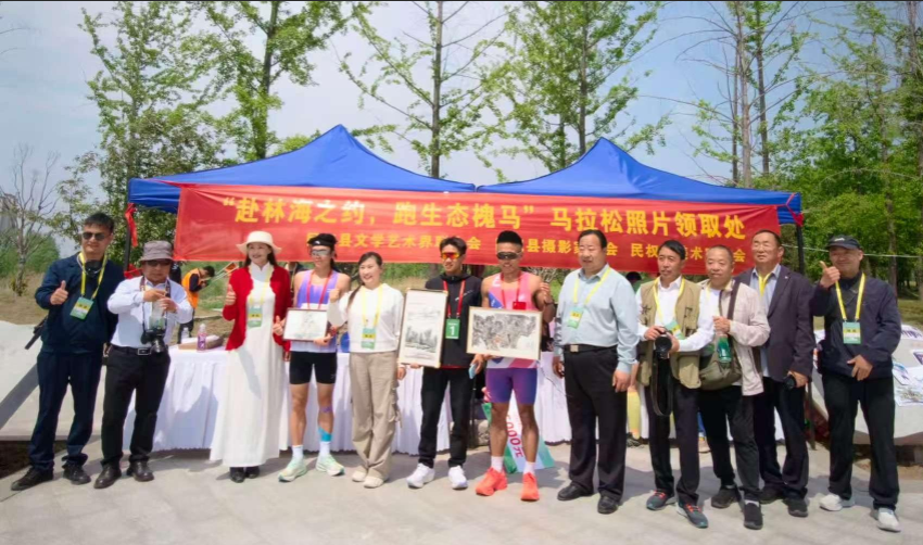 申甘林带作为亚洲十大人工防护林之一,是民权三代人艰苦奋斗铸就的绿色奇迹。本次马拉松赛道串联黄河故道国家湿地公园与申甘林带自然景观,跑友们在奔跑中邂逅“人在画中跑”的极致体验。民权县摄影家协会提前筹备,在赛事主会场搭建专属服务点,配备专业打印设备与工作人员,全程为跑友免费打印赛道抓拍影像、完赛合影等照片,让每一个奔跑的瞬间都有了具象化的留存载体。