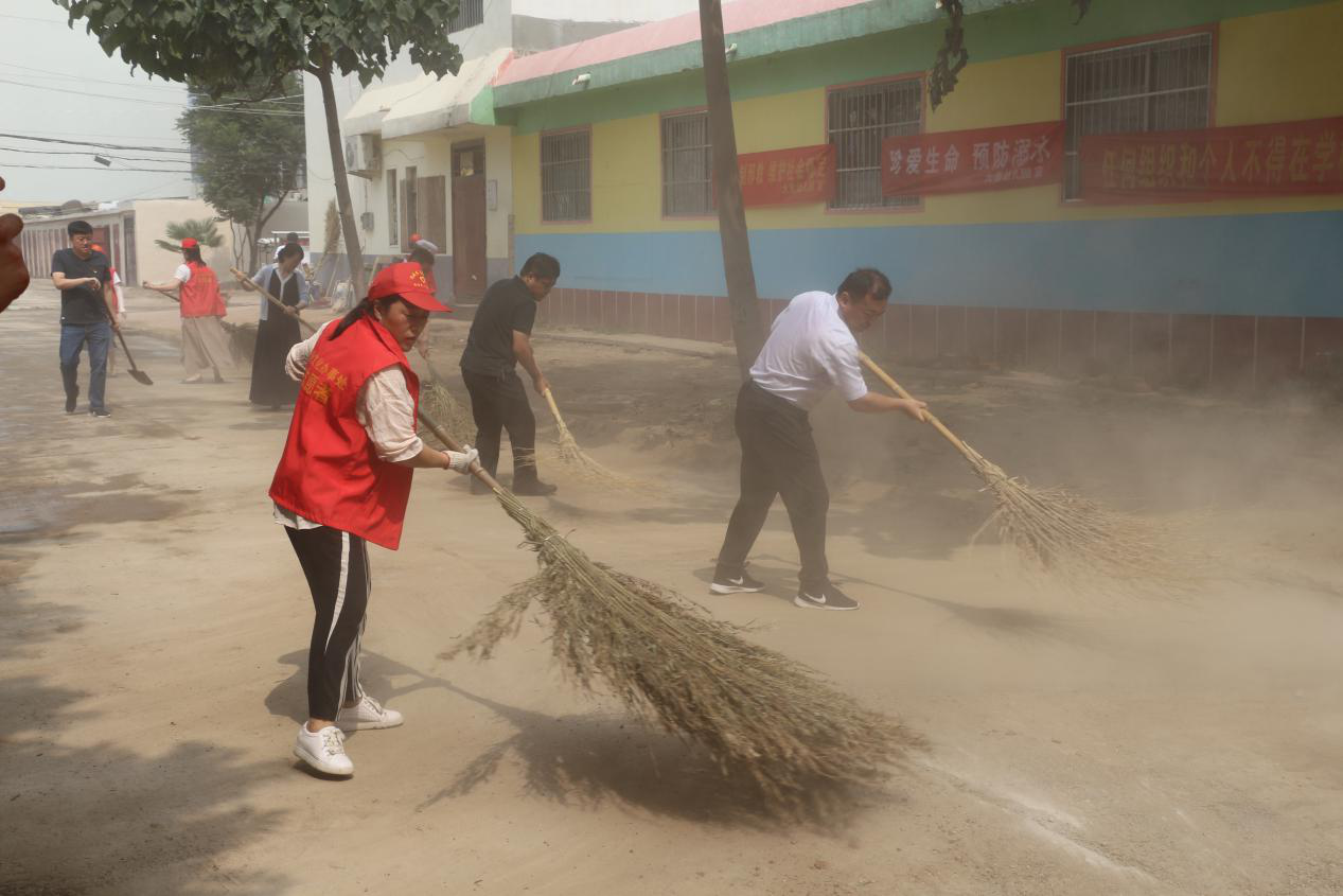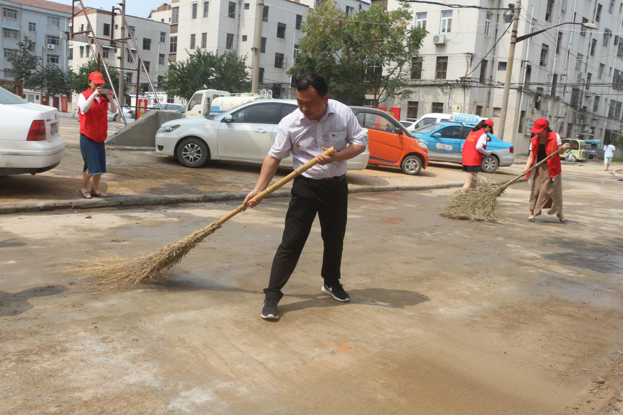 发布时间:2018-08-08 浏览: 次 作者:张其鵬 本报讯 8月1日上午,商丘睢阳区文化办事处党委书记孙海涛到商都社区检查商桐小区的“两城”联创工作。 盛夏的骄阳把大地烘烤的像个大火炉。一进小区,就看到办事处机关的工作人员身穿红马甲头戴小红帽,和社区工作人员一道打扫卫生。孙书记见此情景,二话不说,马上找来大扫帚,挥帚上阵。那动作快速有力,呼呼有声,在尘土的飞扬中和同志们并肩劳动。同志们见书记亲自参加劳动,一点也没有做秀的姿态,个个都被感染了,劳动的劲头更大更足了,在劳动时,有人还不时的逗个笑话,把艰苦的劳动变成了欢快的场景。 经过一个多小时的劳动,道路中间的尘土和杂草垃圾不见了,环境焕然一新,再看看孙书记,浑身上下的衣服被汗水浸透,没有一处干爽的地方,裤腿上和衣袖上沾满了灰土,可脸上却洋溢着劳动后的快乐。(文图 张其鵬)