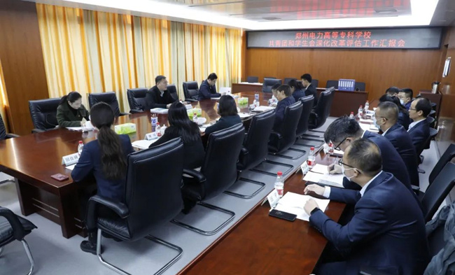 为持续深化高校共青团和学生会组织改革创新,提升郑州电力高专共青团和学生会改革实效,团省委、省学联开展全省高校共青团和学生会(研究生会)深化改革评估工作。12月7日上午,团省委派出的河南省高校共青团和学生会深化改革评估工作第一组一行三人到郑州电力高专开展实地复核评估工作。郑州电力高专党委副书记、副校长刘广凯、高级管理师周明霞、党委学工部、团委负责同志、各团总支书记、校院两级学生会工作人员代表、普通学生代表参加会议。