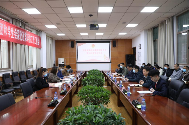 团省委高校学生会组织深化评估第六组组长、河南财经政法大学团委副书记李曼介绍了此次评估工作的背景意义和程序要求。她表示,希望学校统一思想、提高站位,以本次评估验收工作为契机,共同找准问题,落实落细改革举措,更好地完成改革任务。