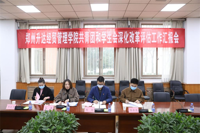 12月8日上午,河南省高校共青团和学生会深化改革第六评估工作组一行四人到升达经贸管理学院开展评估检查。校党委副书记、副校长兼工会主席张金安出席,校团委全体工作人员、各二级学院团委负责人、校学生会主席团成员、访谈对象及学生代表参加此次考核评估。