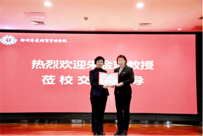 报告会开始前,校长郭爱先为朱金瑞教授颁发了聘任证书,敦聘朱金瑞为学校客座教授。(魏巍 郭玉格 王淑君)