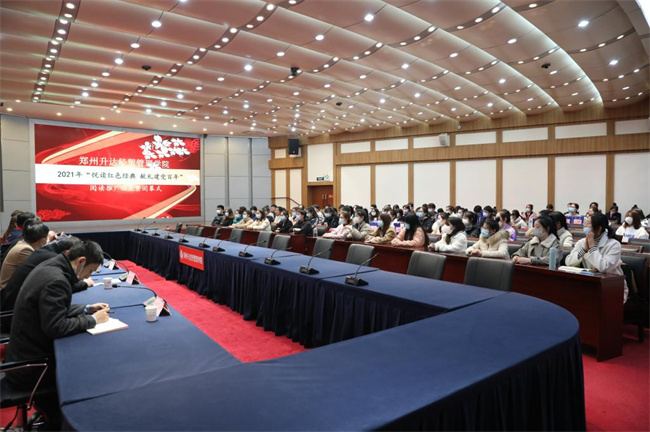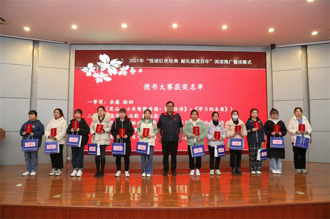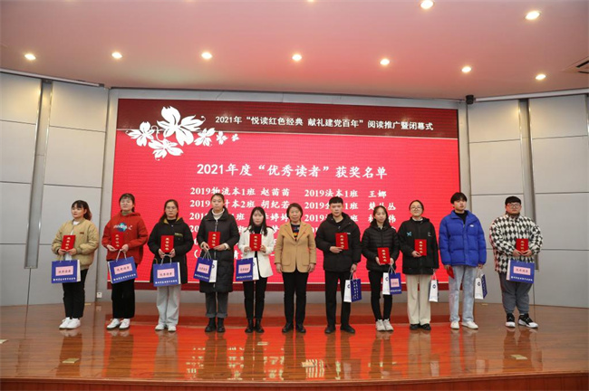 12月16日下午,2021年升达经贸管理学院“悦读红色经典,献礼建党百年”阅读推广活动总结表彰暨闭幕式在国际会议厅隆重举行。执行董事王新奇、校长郭爱先、副校长张其武,学务处张红阳、外国语学院院长张梦、外国语学院党委书记石晧召、校团委副书记李松涛等出席,师生代表100余人参加此次会议。仪式由图书馆馆长晁国立主持。