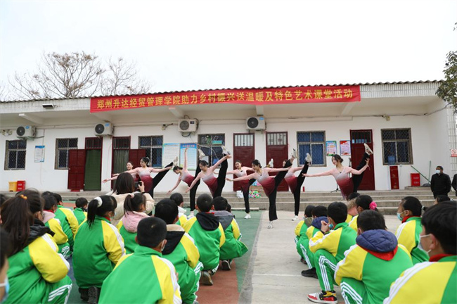 “这两年我们学校的变化很大,孩子们的学习环境越来越好,升达学院向我们捐助的大量书籍、文具、体育用品等,大大丰富了孩子们的学习生活。本次升达学院的师生服务队开展的特色艺术课堂,让小学生和大学生近距离接触,让村里的孩子见识了外面的世界。同时,谈倩老师的专业授课,对学校教师而言是一节生动的示范课,大学生们不畏严寒,为大家带来精彩的演出,是对专业精神的最好诠释,在孩子们心中埋下了艺术的种子。”提起教育帮扶,姚山希望小学校长刘吉晓满怀感激地说。