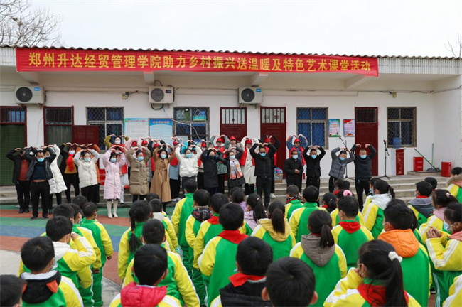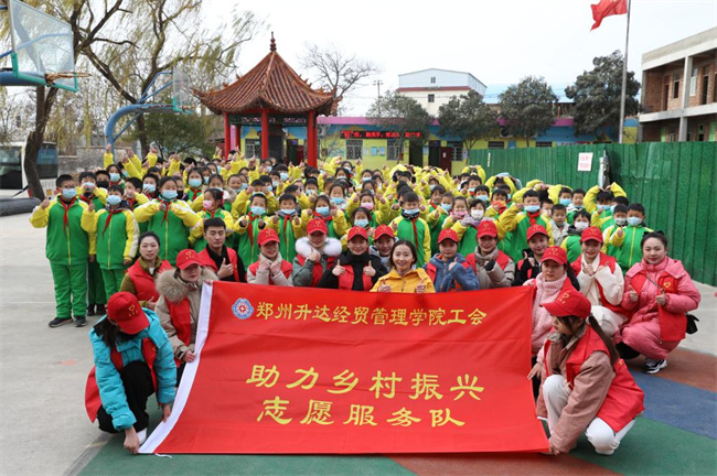 为响应省教科文卫体工会开展“践行新思想·奋进新时代”助力乡村振兴职工志愿服务行动号召,巩固拓展脱贫攻坚成果,助力乡村振兴战略。12月17日,由升达经贸管理学院校工会组织的师生志愿服务队来到新密市袁庄乡张家门村开展“助力乡村振兴”活动,校工会副主席朱永恒、工会办公室主任李成允、心理健康中心葛宝岳教授、艺术学院教师谈倩及学校师生志愿者一行20余人参加此次活动。