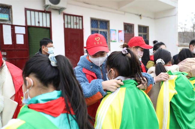 随后,志愿服务队一行来到姚山希望小学,开展送温暖与特色艺术课堂活动。志愿团队为姚山希望小学全体学生捐赠了量身定制的棉衣校服,共计131人次。志愿团队还捐赠了品类齐全的文具用品、体育器材、休闲益智玩具等物资,保障各项教学的顺利开展。