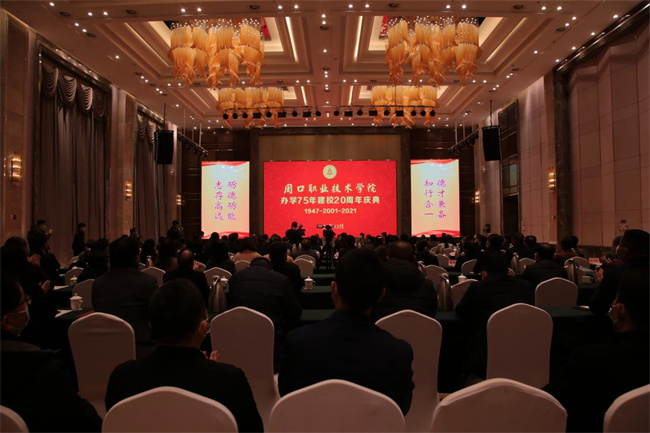 12月18日上午,周口职业技术学院办学75年建校20周年庆祝大会召开。市委常委、宣传部长王少青,市人大常委会副主任建志, 副市长秦胜军,市政协副主席杨珺,周口职业技术学院党委书记刘士欣、校长李清臣,河南科技职业大学党委书记王剑参加了庆典活动。老领导解冰山、李松海、张卫宪,以及省内兄弟院校负责人、知名校友、合作办学企业负责人应邀参加活动。