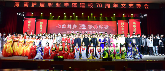 2021年12月,河南护理职业学院迎来建校70周年,河南省卫生健康委、安阳市委市政府和兄弟院校纷纷通过贺信和祝福视频的方式,共祝学院七秩华诞。学院也通过举办梅庚年铜像揭幕仪式、座谈会、文艺晚会、学术讲座等系列主题活动迎接建校70周年。