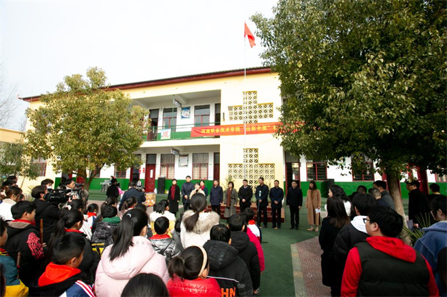 在朱耀环小学,梅乐堂代表学校向小学捐赠了价值3万元的10个品种196件办公体育用品,并对孩子们提出三点期望:一是要增强志气、骨气、底气,从自身和现在做起,奋发有为,做对国家、对人民、对社会有用的人。二是要树立“自尊,自重,自爱,自立,自强”的精神,善于在困难中磨练意志,强健体魄。三是要弘扬贾湖笛文化,提升艺术修养,增强文化自信。朱暑光和朱耀环小学校长王艳霞对该校捐赠慰问表示感谢,并希望学校依托职业教育资源助力舞阳教育事业发展。期间,该校仪仗队举行了升旗仪式。