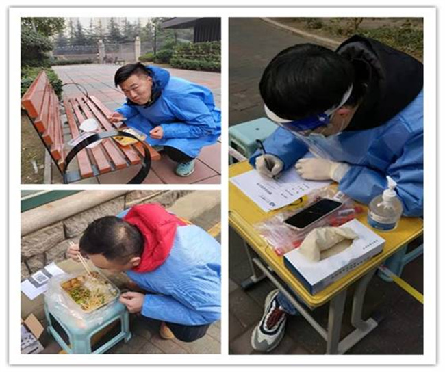 齐心协力抗疫情,互相支持渡难关。在核酸检测采样的现场,志愿服务的党员干部、社区工作人员和来自濮阳市的核酸检测医务人员齐心协力、互相支持、密切配合,坚守岗位,保障了核酸检测采样工作的顺利进行。你累了换我来,我累了你顶上,期间互相帮助的场面不时出现。一城严寒,一城守护。积雪未尽的绿城,因为有白袍战士、有红马甲、有蓝巨人、有平凡人的付出,变得尤为温暖。在疫情面前,他们舍小家、顾大家,交相呼应、共克时艰,守护着冬日里的最美绿城!(乔增辉)