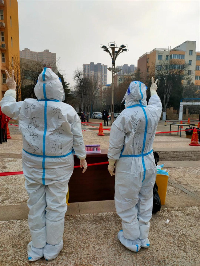 与时间“赛跑”、 与“疫魔较量”,从三尺讲台到战“疫”前线,河南护理职业学院青年教师化身白衣战士,迎“疫”而上,用实际行动扛起责任。1月9日,学院郭凡、王莹、杜尚珂、王婷玉、侯志慧等5名检验专业教师志愿者奔赴安阳市核酸检测实验基地进行样本检测工作,其余29名教师志愿者则前往高新区多个社区支援安阳市全员核酸检测采样工作。