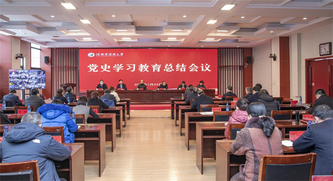 2022 年 1 月 24 日,河南中医药大学党史学习教育总结会议在图书馆第二报告厅召开。省委高校工委党史学习教育第四巡回指导组组长、省教育厅二级巡视员李培俊,省委高校工委党史学习教育第四巡回指导组副组长、河南工业大学原党委副书记程振凯,省教育厅思政处副处长、一级调研员杨宗辉,河南工业大学经贸学院党委副书记王鹏,华北水利水电大学环境与市政工程学院党委副书记郭婷到会指导。按照疫情防控相关要求,会议设主会场与分会场。河南中医药大学在郑校领导、机关正职与直属单位党组织负责人等在主会场参会。各学院、书院、附属医院领导班子成员、支部书记、辅导员等在分会场参会。会议由河南中医药大学党委副书记、工会主席张小平主持。