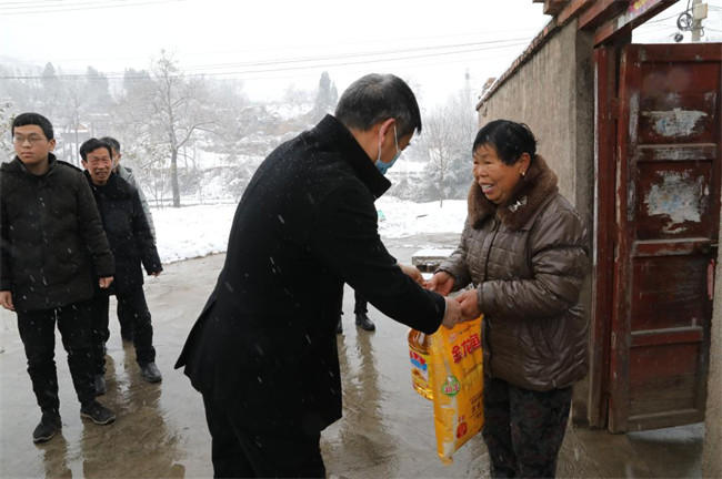 “去年收成怎么样?”“最近身体怎么样?”“家里还有什么困难”……迎着雪花,施院长一行将米、面、油等慰问品送到村“五保”户、“低保”户、大病户和困难残疾户家中,并致以新春祝福和诚挚问候。详细了解他们在医疗、生活等方面遇到的实际困难,并鼓励他们要勇于面对逆境,敢于战胜困难,相信在党和政府的关怀下,生活一定会越来越美好。