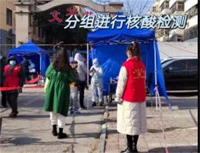 2022年1月份以来疫情逐渐蔓延,愈发严重。1月7日,2021级大数据与会计1班的姜天灿同学接到了虞城县城郊乡志愿者报名的通知。次日,她被分配到虞城县交通运输局工作点,但由于距离较远、为防止疫情进一步恶化,村镇将道路封堵,报到之后便没能正式参与工作。1月9日,居住地河南省商丘市虞城县稍岗镇张灿庄村也开始了第一次全员核酸检测,她便申请加入了村里的志愿服务行列,主要负责核酸检测信息录入并帮助采集人员点名叫号。第一次信息录入忙到了晚上十点半,但姜天灿同学说:“虽说耗时较长、天气很冷,但是大家拧成一股绳为村里付出的心,以及相互鼓舞的每一个动作言辞,真的一直温暖我……”