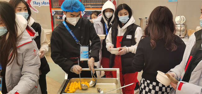 志愿者陈娅莎说,在元宵节举家团圆的时刻,能够通过自己烹调的美食,为冬奥会助力,贡献当代大学生的力量,特别的自豪,同时通过自己的微薄之力更好的推动中国传统文化传播,增强文化自信,在世界舞台展示东方魅力,觉得非常骄傲。(马永生)