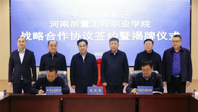 3月4日下午,河南质量工程职业学院与市高新区战略合作签约及揭牌仪式在高新区火炬园举行。院党委书记邱红标、高新区党工委书记凌兵奎、常务副院长徐宗华、副院长田新现、党工委副书记、管委会主任赵秀红、党工委副书记刘亚,党工委委员、纪工委书记、监察工作办公室主任白云霞,党工委委员、管委会副主任马晓光、党工委委员、管委会副主任阮晓鹏及科技创新局、经济发展局、人力资源管理局六大园区负责同志出席仪式。白云霞主持仪式。