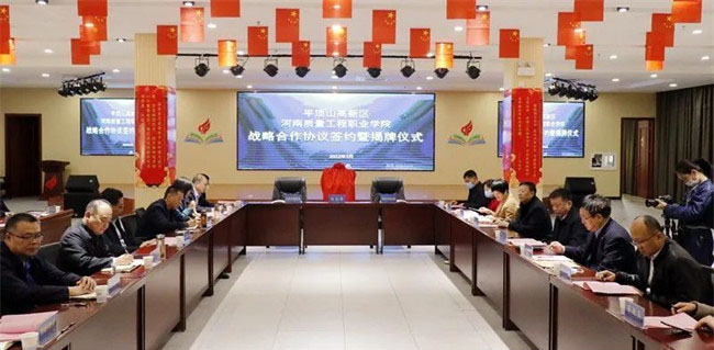 徐宗华在致辞中指出,电气装备产业学院的成立是平顶山高新区和河南质量工程职业学院贯彻全国职业教育大会精神的迅速行动和有力举措;是推动高等职业教育与地方经济社会发展深度融合协同发展的积极探索和生动实践;是政府、企业、高校三位一体互动发展的新路径。是开启高新区和学院携手并进,高质量发展的新征程。双方以联合开展人才培养、科学研究、社会服务和文化传承为重点,在更深层次、更宽领域、更高水平持续深化合作、携手共进。我院将以最大诚意、最好政策、最优资源,为产业学院发展创造良好条件,提供大力支持。在共同努力下,双方的合作之路必将越走越宽广,合作的内涵必将越来越丰富,融合发展必将提升到新的高度,实现双方合作共赢、共同发展,为推动我市高质量转型发展贡献力量。