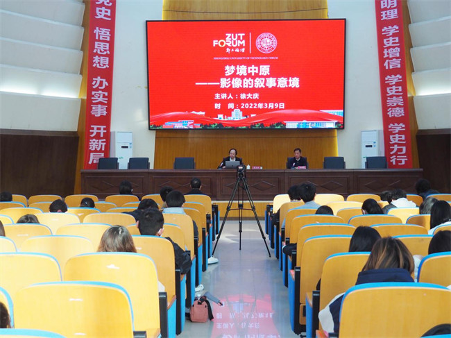 3月9日下午,“郑工论坛”新学期的第一讲,郑州工程技术学院特邀中国摄影家协会理事、原郑州市文联主席徐大庆先生在英才校区明德楼一楼学术报告厅为学校师生作《梦境中原——影像的叙事意境》报告。学校党委书记周春辉,副校长甘勇、李欣、郑高飞,党委委员、宣传部长吕村,传媒学院和文化遗产与艺术设计学院的200余名师生聆听报告会。报告会由周春辉书记主持。
