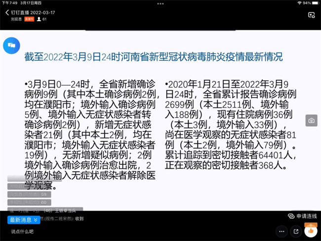学校通过开展各种各样线上线下相结合的活动,对当前防疫形势、防疫知识,防疫策略等进行多维度,多角度的讲解,减少同学们的焦虑与担心,有助于营造安定有序的校园文化氛围,我们坚信,大家携手努力,定能战胜疫情。(河南牧业经济学院供稿)