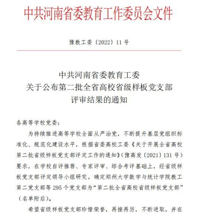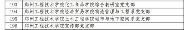 近日,中共河南省委教育工委公布了第二批全省高校省级样板党支部评审结果,郑州工程技术学院化工食品学院综合教研室党支部、经济贸易学院物流管理与工程系党支部、土木工程学院城市与地下空间系党支部、宣传部党支部榜上有名,获评第二批全省高校省级样板党支部。