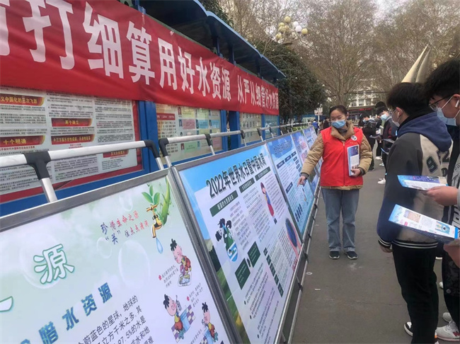 在“世界水日”当天,学校隆重举办了“精打细算用好水资源 从严从细管好水资源”宣传教育展。在校内主干道摆放节水知识展板,发放节水宣传手册,吸引了众多师生驻足观看;召开了“保护水资源”主题班会和主题团课,开展“保护水,节约水,珍惜水”倡议签名。引导广大学生树立节约意识,得到了校内师生的支持和参与。学校还利用校内“两微一端”平台,宣传有关先进典型事迹,展播节约用水原创公益短视频,推广节水节能先进经验,通过校园广播、横幅标语、黑板报等,宣传节约用水知识,营造了浓厚的活动氛围。此外,学校还组织广大师生积极参与水利部开展的知识网络答题等活动,对于进一步提升广大师生节水意识,养成节水习惯,发挥节水示范引领作用,产生了良好作用。
