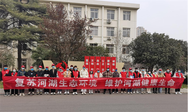 学校坚持开展节水护水志愿服务活动,在“世界水日”“中国水周”期间,组织水利、环境类专业师生到智慧水生态监管中心、湿地公园、污水处理站、污泥及建筑垃圾再生厂等地进行实地调研,开展“复苏河湖生态环境 维护河湖健康生命”、“人与自然和谐共生”、“关爱山川河流”主题公益宣传志愿服务活动。在黄河湿地公园及东风渠公园,学校还组织开展了“保护母亲河 争当河小青”“保护东风渠 争做河小青”“蓝天保卫战”等志愿活动,参与引领社会形成珍惜水、节约水和爱护水的良好风尚。