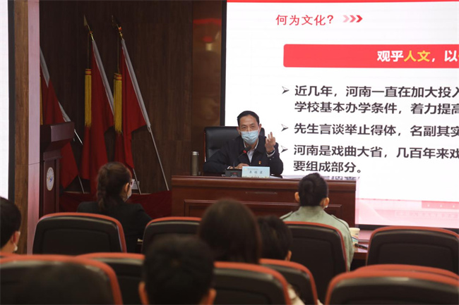 文化兴则国运兴,文化强则民族强。文化强国是中华民族复兴的重要标准,建设社会主义文化强国,不仅需要提升公共文化服务水平,健全现代化文化产业体系,还需要提高国家文化软实力。来栋梁结合河南节日奇妙游系列宣传片和短视频博主李子柒等当下热点话题,教育引导同学们要通过自己的实际行动继承和弘扬中华优秀传统文化,讲好中国故事,传播好中国声音,阐释好中国特色,做有情怀、有思想、有担当、有学识的新时代大学生。(李安冉)