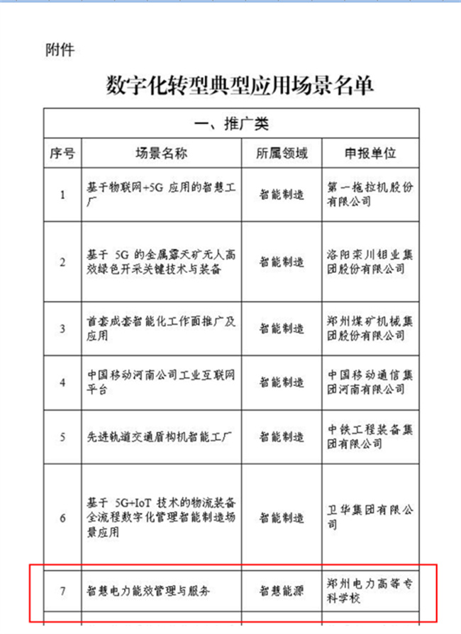 3月27日,郑州电力高等专科学校基于智慧电力能效工程技术研究中心和虚拟仿真实训基地申报的“智慧电力能效管理与服务”,获评推广类唯一的“智慧能源领域”数字化转型典型应用场景。