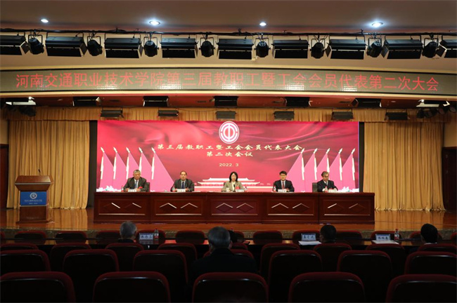 阳春三月,生机盎然。在全国两会胜利闭幕之际,近日,河南交通职业技术学院第三届教职工代表暨工会会员代表大会第二次会议在郑东校区图书馆二楼报告厅(主会场)召开。本次大会采取视频会议形式举行,设立汽车学院、公路学院、物流学院、轨道学院、教辅、机关等六个分会场。学校领导班子成员和101名代表参加会议,党委副书记孙建立主持会议。