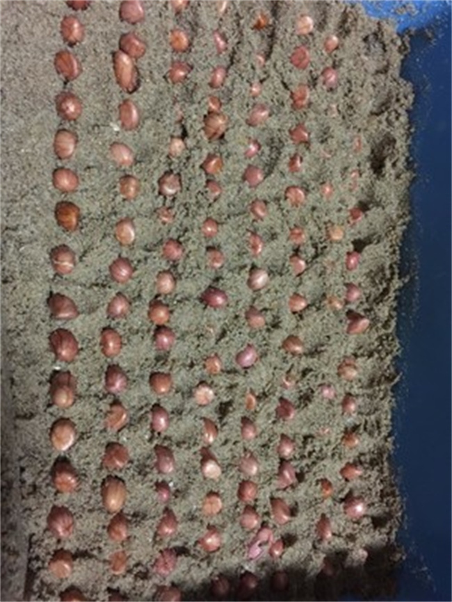 (2)播种:以用河沙及沙滩沙为宜,取泡沫箱或胶箱均可,箱底先铺沙厚度在2~3厘米,铺沙后把花生播入畦面,播种要均匀,疏密有度.种子播匀后用洒水壶适当淋一遍清水,再盖沙厚度为7~8厘米,保持畦面平整,最后用洒水壶淋一遍透水.沙花生芽一般播种后2-3天不必淋水,3天后如温度高可酌情补水一次.补水原则是保持沙畦内合理的湿度,切忌太湿烂芽.
