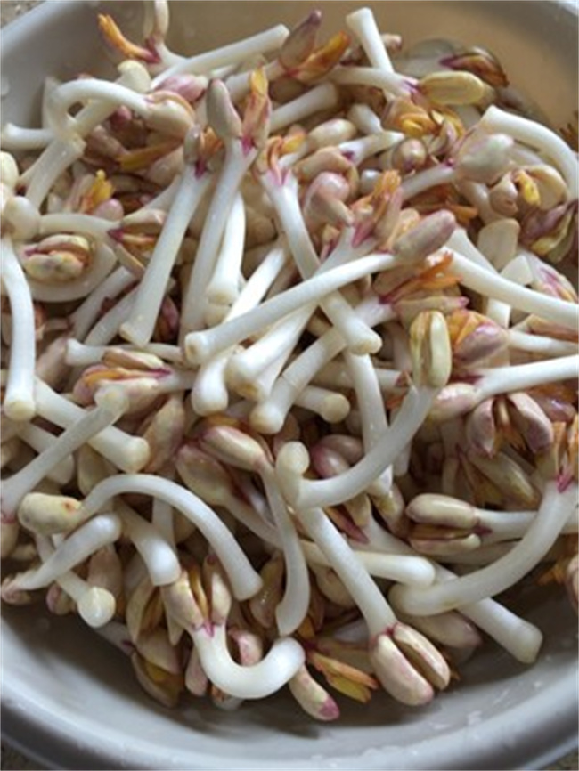 (3)采收:沙畦里的花生芽大概长出5-10cm的时候即可采收.采收后把沙洗净,剪掉根须可以了。