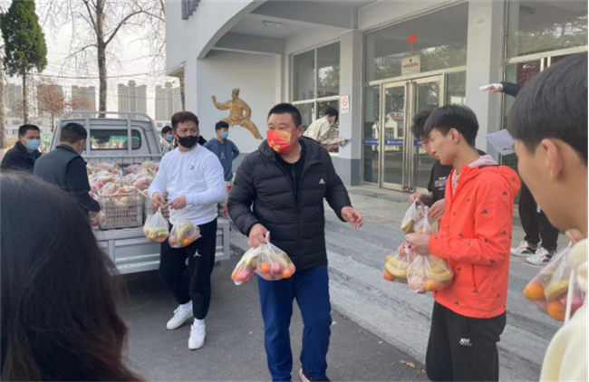 各学院驻校教师深入学生群体,了解学生需求,关心、关爱、温暖每一位学生。学校从学生生活实际出发,为大家发放水果、体育用品,及时补充生活和防疫物资。同时,学校密切关注学生心理健康状态,积极开展线上线下的心理辅导,疏解疫情下的紧张情绪,鼓励学生保持积极乐观心态、安心学习、健康生活。