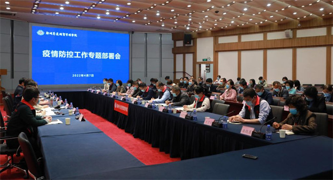 会上,校党委副书记、副校长、工会主席张金安对近期疫情防控工作进行安排部署。他指出,因近期龙湖镇有确诊病例在学校周边活动,该校配合属地疫情防控工作要求,自4月1日被划入管控区以来,在董事会、校党政领导、各级党员干部和广大师生的共同努力下,在校师生总体上学习、生活秩序良好。面对这些问题,相关部门、各单位也深入学生做了大量的工作,取得了良好成效。在未解除管控之前,下一步要继续从严从细做好各项工作,按照上级对管控区的要求,落实好“六个一律”等措施。没有在校内的教职工要做好网课和居家办公,非必要不离郑。按照疫情防控要求,线上与线下相结合,开展好教学活动。相关部门和单位要积极关心学生在考研复试、就业面试、论文写作与答辩等方面遇到的问题,提供良好的条件和服务。要深入细致做好学生思想教育、心理帮扶和人文关怀,帮助缓解情绪压力,提醒学生运动锻炼和活动时避免聚集,确保顺利度过困难时期。